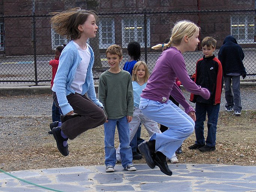 Two generations ago teachers and parents were not custodians of street rhymes and jump rope games. They were transmitted spontaneously by the big kids down the street or by friends who lived over on the next block. I am needed here for just a minute– a steward of an endangered game– while I teach children to “jump in” to what is theirs.