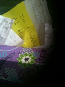 I bet the messages are in the box are little jewels. Please let me know when you need a parent volunteer. All the other teachers have asked at one time or another. Cheers.